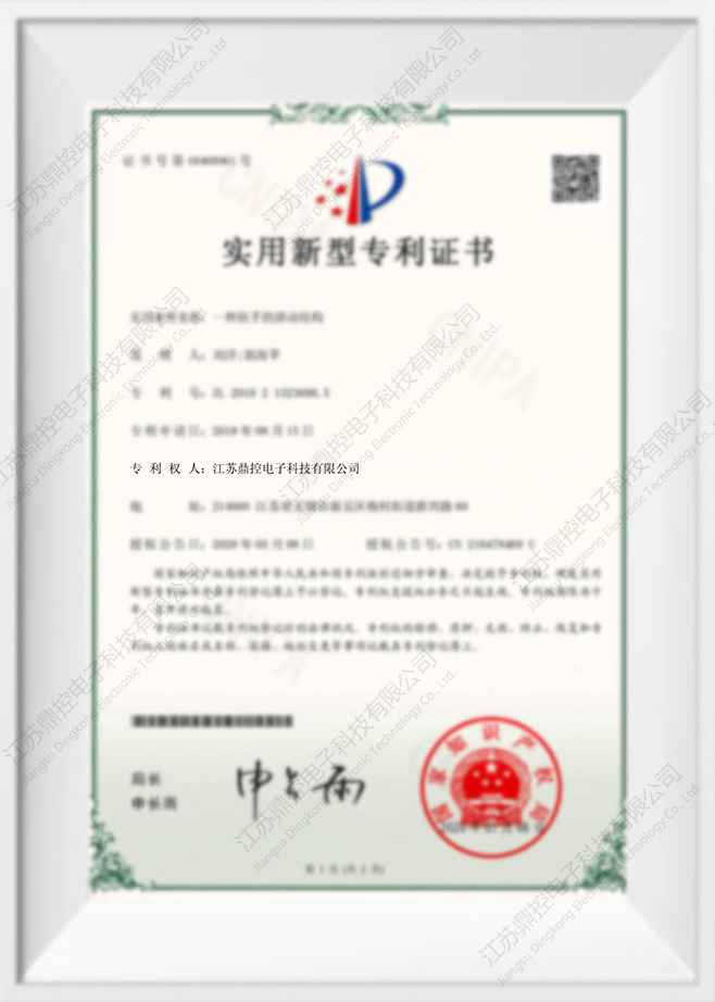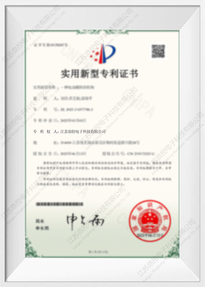 실용 신안 특허 인증서 : 전기 플립 스크린 메커니즘